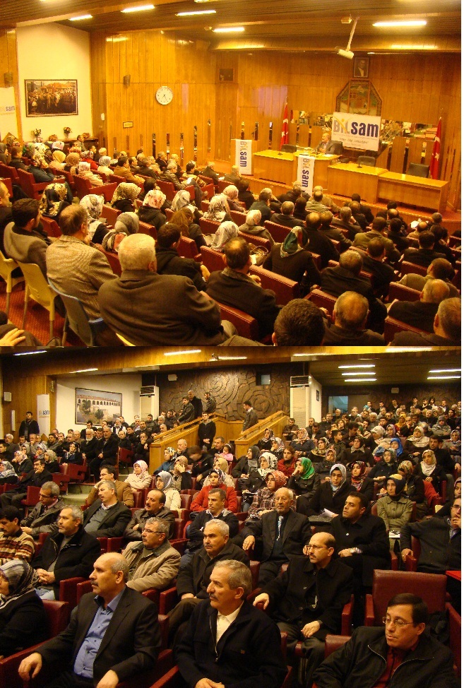 Konuşmasına kendisini Malatya insanıyla buluşturduğu için BİLSAM’a teşekkür ederek başlayan Ahmet Taşgetiren, konuşmasını son dönemde Islam dünyasında yaşanan değişim ve dönüşüm hareketlerini, Türkiye’nin değişim ve dönüşüm süreciyle birlikte ele alan bir perspektifle sürdürdü. Dünyadaki en hareketli bölgelerin Müslümanların yasadığı bölgeler olduğunu belirten Taşgetiren, Değişim değerler, kimlik, kişilikle ilgili olsa da yaşanan bu değişimi daha geniş bir perspektifle ele almak gerektiğini belirtti. İslam dünyasındaki bu hareketliliğin aslında bir normalleşme süreci olduğunu anormal olanın mevcut mevcut durum olduğunu belirten bu değişim sürecinin nasıl bir normalleşmeyi getireceği bölgemize Türkiye’ye yansımalarının nasıl olacağını, bunu iyi değerlendirmek gerektiğini belirtti. Islam dünyası olarak yeni bir kader yürüyüşünün arifesinde olduğumuzu belirten Taşgetiren Anormal olanın I.Dünya savaşı sonrası yasadığımız coğrafyada oluşturulan sınırlar, kurulan siyasi sistemler ve bu siyasi sitemlerin yürütücüsü olan yönetici kadrolar olduğunu söyledi. I.Dünya savaşı sonrası Islam dünyasında bağımsız diye bilinen Türkiye, Iran ve Afganistan dışında hiçbir ülke olmadığını kalan tüm Islam coğrafyasının sömürge durumunda olduğunu bağımsız devlet olarak sayılan bu üç ülkenin ise egemen güçler tarafından dayatılan siyasi sistemler vasıtasıyla bir nevi etkisizleştirilerek farklı bir sömürgeleştirmenin uygulandığını belirtti.