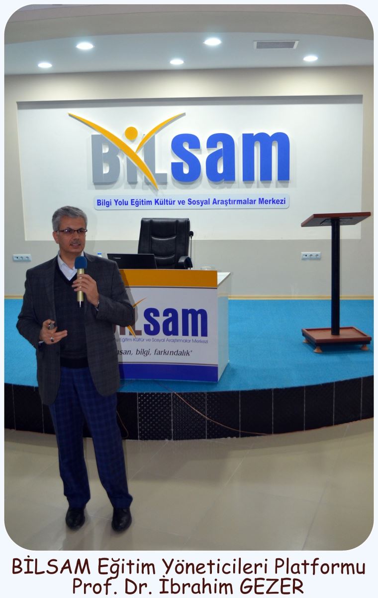 BİLSAM Eğitim Yöneticileri PlatFormu’nun 2014-2015 1. Yarıyıl sonu istişare toplantısı Eğitimci- Yazar Prof. Dr. İbrahim GEZER’in “Eğitimde Yeni Paradigma Arayışları ve Sorunlarımız“  konulu konferansıyla başladı. Yoğun bir katilimin olduğu program BILSAM Konferans Salonunda gerçekleştirildi.