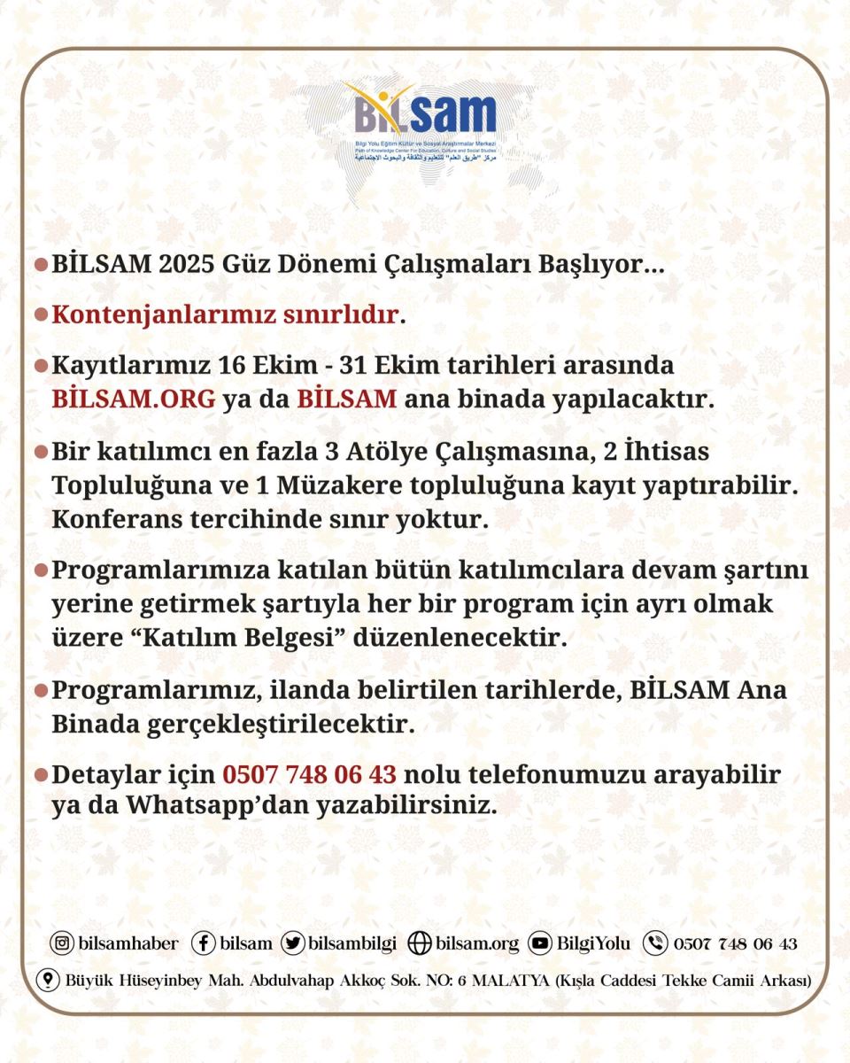 2025 GÜZ DÖNEMi ÇALIŞMALARI BAŞLIYOR...