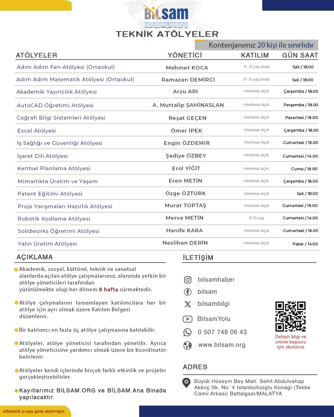 GÜZ DÖNEMİ TEKNİK ATÖLYELERİMİZ BAŞLIYOR....